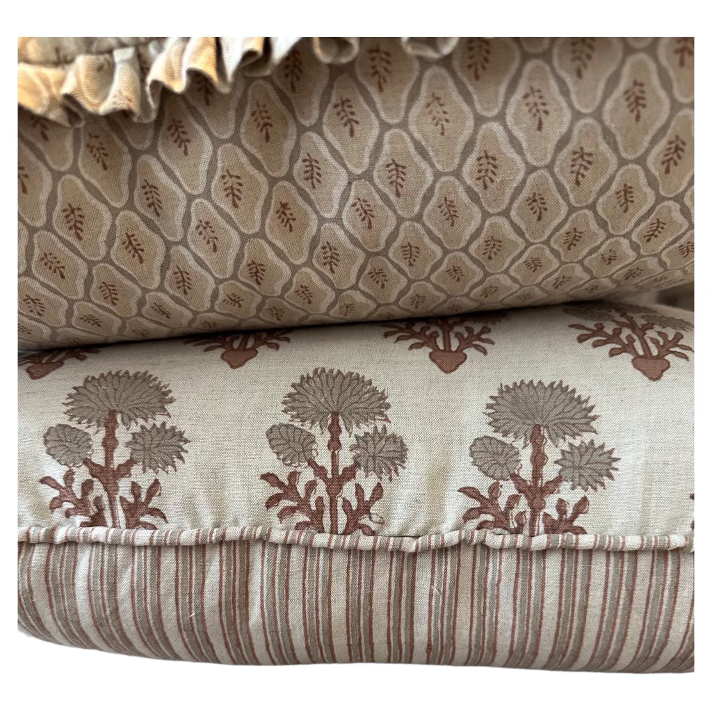 - Hand block printed by skilled artisans in India. As with any hand printed fabric, subtle imperfections and irregularities are to be expected. We do not consider these flaws, but hallmarks of the hand-printed nature of this fabric.